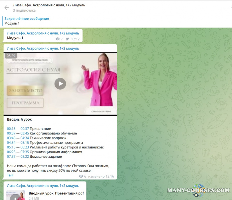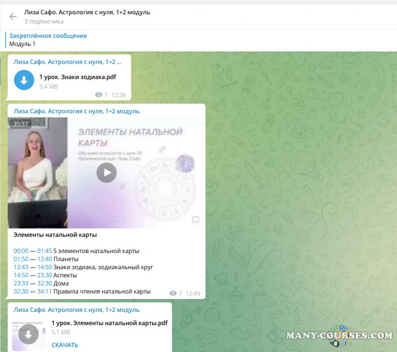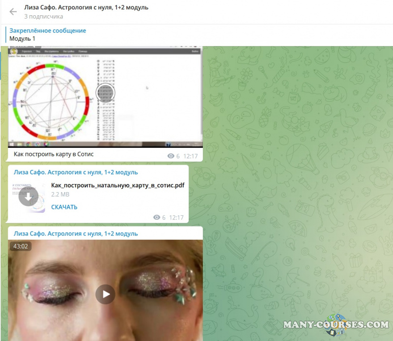 Вы находитесь на странице товара «Лиза Сафо - Астрология с нуля. Тариф 1 + 2 Модуль», это материал 2022 года, который, мы надеемся, принесет вам пользу. Данный курс расположен на платформе «Канал Telegram».Скриншоты с платформы на которой расположены материалы вы можете найти выше. В нашем магазине курсы доступны по самым выгодным ценам. Вы можете перейти на оригинальный продажник, после чего принять решение о покупке. Если бы вы покупали у самого автора, то данный курс вам обошелся 85900 рублей. Вы получаете этот курс, купив в нашем магазине MANY-COURSES.NET, с огромной скидкой, всего 1690 рублей. Обучающий курс входит в рубрику «Эзотерика и оккультизм / Астрология», вы можете поискать другие сливы курсов в этой рубрике. В нашем магазине Вы найдёте ещё много курсов от автора «Лиза Сафо», достаточно ввести в поиск имя автора.
