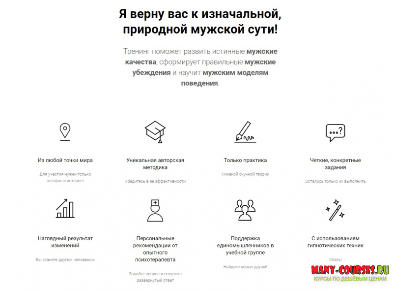 Цель тренинга — вернуть вас к изначальной, природной мужской сути.