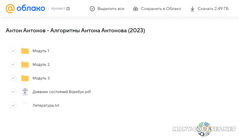 Вы находитесь на странице товара «Антон Антонов - Алгоритмы Антона Антонова (2023)», это материал 2023 года, который, мы надеемся, принесет вам пользу. Данный курс расположен на платформе «Облако Mail».Скриншоты с платформы на которой расположены материалы вы можете найти выше. В нашем магазине курсы доступны по самым выгодным ценам. Вы можете перейти на оригинальный продажник, после чего принять решение о покупке. Если бы вы покупали у самого автора, то данный курс вам обошелся 35000 рублей. Вы получаете этот курс, купив в нашем магазине MANY-COURSES.NET, с огромной скидкой, всего 349 рублей. Обучающий курс входит в рубрику «Эзотерика и оккультизм / Психология / Саморазвитие и мотивация», вы можете поискать другие сливы курсов в этой рубрике. В нашем магазине Вы найдёте ещё много курсов от автора «Антон Антонов», достаточно ввести в поиск имя автора.
