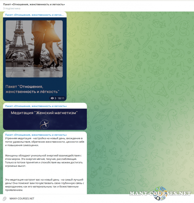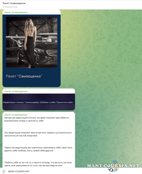 Вы находитесь на странице товара «Анна Лапина - Большая распродажа курсов и медитаций. Тариф Все и сразу», это материал 2023 года, который, мы надеемся, принесет вам пользу. Данный курс расположен на платформе «Канал Telegram».Скриншоты с платформы на которой расположены материалы вы можете найти выше. В нашем магазине курсы доступны по самым выгодным ценам. Если бы вы покупали у самого автора, то данный курс вам обошелся 40990 рублей. Вы получаете этот курс, купив в нашем магазине MANY-COURSES.NET, с огромной скидкой, всего 1690 рублей. Обучающий курс входит в рубрику «Эзотерика и оккультизм / Психология», вы можете поискать другие сливы курсов в этой рубрике. В нашем магазине Вы найдёте ещё много курсов от автора «Анна Лапина», достаточно ввести в поиск имя автора.