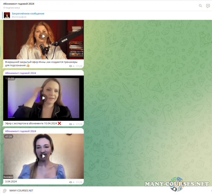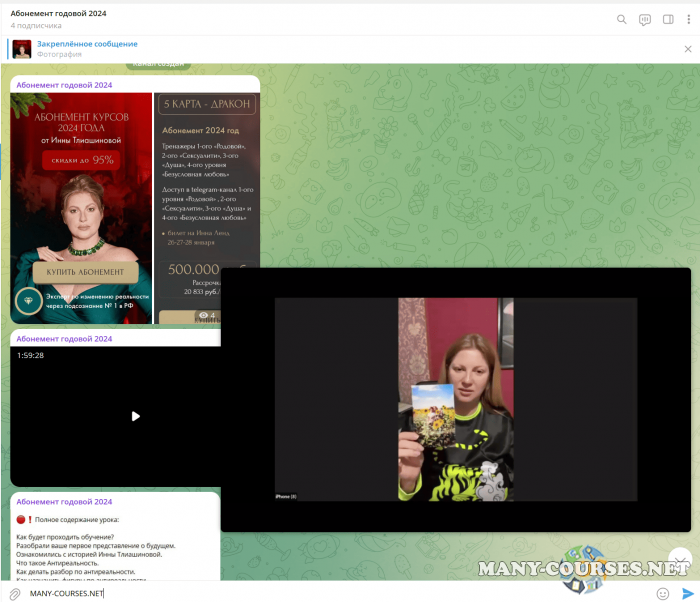 Вы находитесь на странице товара «Инна Тлиашинова - Абонемент 2024. Тариф Базовый», это материал 2024 года, который, мы надеемся, принесет вам пользу. Данный курс расположен на платформе «Канал Telegram».Скриншоты с платформы на которой расположены материалы вы можете найти выше. В нашем магазине курсы доступны по самым выгодным ценам. Вы можете перейти на оригинальный продажник, после чего принять решение о покупке. Если бы вы покупали у самого автора, то данный курс вам обошелся 500000 рублей. Вы получаете этот курс, купив в нашем магазине MANY-COURSES.NET, с огромной скидкой, всего 2500 рублей. Обучающий курс входит в рубрику «Эзотерика и оккультизм / Психология», вы можете поискать другие сливы курсов в этой рубрике. В нашем магазине Вы найдёте ещё много курсов от автора «Инна Тлиашинова», достаточно ввести в поиск имя автора.