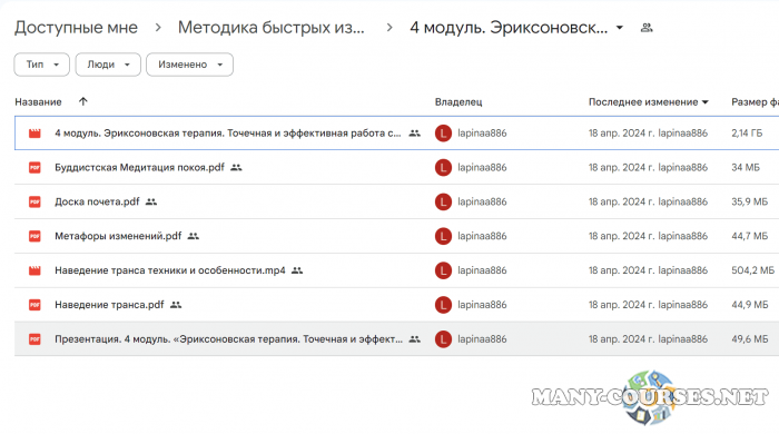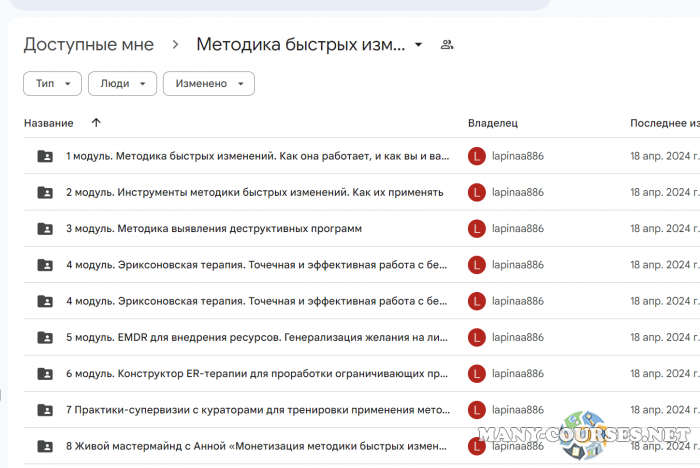 Вы находитесь на странице товара «Анна Лапина - Методика быстрых изменений», это материал который, мы надеемся, принесет вам пользу. Данный курс расположен на платформе «Яндекс Диск».Скриншоты с платформы на которой расположены материалы вы можете найти выше. В нашем магазине курсы доступны по самым выгодным ценам. Вы можете перейти на оригинальный продажник, после чего принять решение о покупке. Вы получаете этот курс, купив в нашем магазине MANY-COURSES.NET, с огромной скидкой, всего 350 рублей. Обучающий курс входит в рубрику «Эзотерика и оккультизм / Психология», вы можете поискать другие сливы курсов в этой рубрике. В нашем магазине Вы найдёте ещё много курсов от автора «Анна Лапина», достаточно ввести в поиск имя автора.