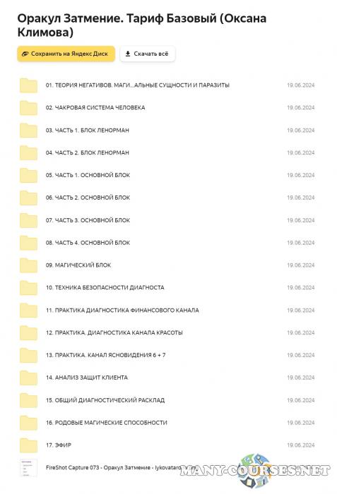 Вы находитесь на странице товара «Оксана Климова - Оракул Затмение. Тариф Базовый», это материал который, мы надеемся, принесет вам пользу. Данный курс расположен на платформе «Яндекс Диск».Скриншоты с платформы на которой расположены материалы вы можете найти выше. В нашем магазине курсы доступны по самым выгодным ценам. Вы можете перейти на оригинальный продажник, после чего принять решение о покупке. Если бы вы покупали у самого автора, то данный курс вам обошелся 40000 рублей. Вы получаете этот курс, купив в нашем магазине MANY-COURSES.NET, с огромной скидкой, всего 650 рублей. Обучающий курс входит в рубрику «Эзотерика и оккультизм», вы можете поискать другие сливы курсов в этой рубрике. В нашем магазине Вы найдёте ещё много курсов от автора «Оксана Климова», достаточно ввести в поиск имя автора.