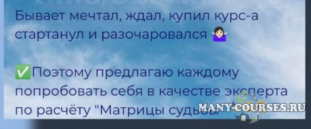- ОБУЧЕНИЕ на полном курсе и МАТРИЦУ СУДЬБЫ (если вы уже заказывали для себя, то можете подарить кому-то из близких)