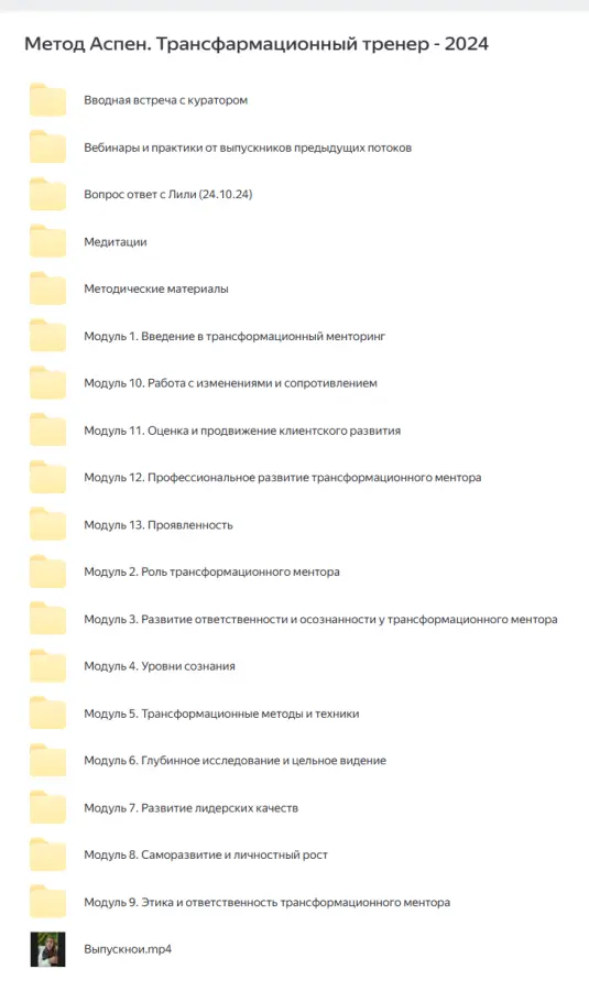 Вы находитесь на странице товара «Лили Аспен - Аспен метод. Тариф Для себя», это материал 2024 года, который, мы надеемся, принесет вам пользу. Данный курс расположен на платформе «Яндекс Диск».Скриншоты с платформы на которой расположены материалы вы можете найти выше. В нашем магазине курсы доступны по самым выгодным ценам. Вы получаете этот курс, купив в нашем магазине MANY-COURSES.NET, с огромной скидкой, всего 2490 рублей. Обучающий курс входит в рубрику «Эзотерика и оккультизм», вы можете поискать другие сливы курсов в этой рубрике. В нашем магазине Вы найдёте ещё много курсов от автора «Лили Аспен», достаточно ввести в поиск имя автора.