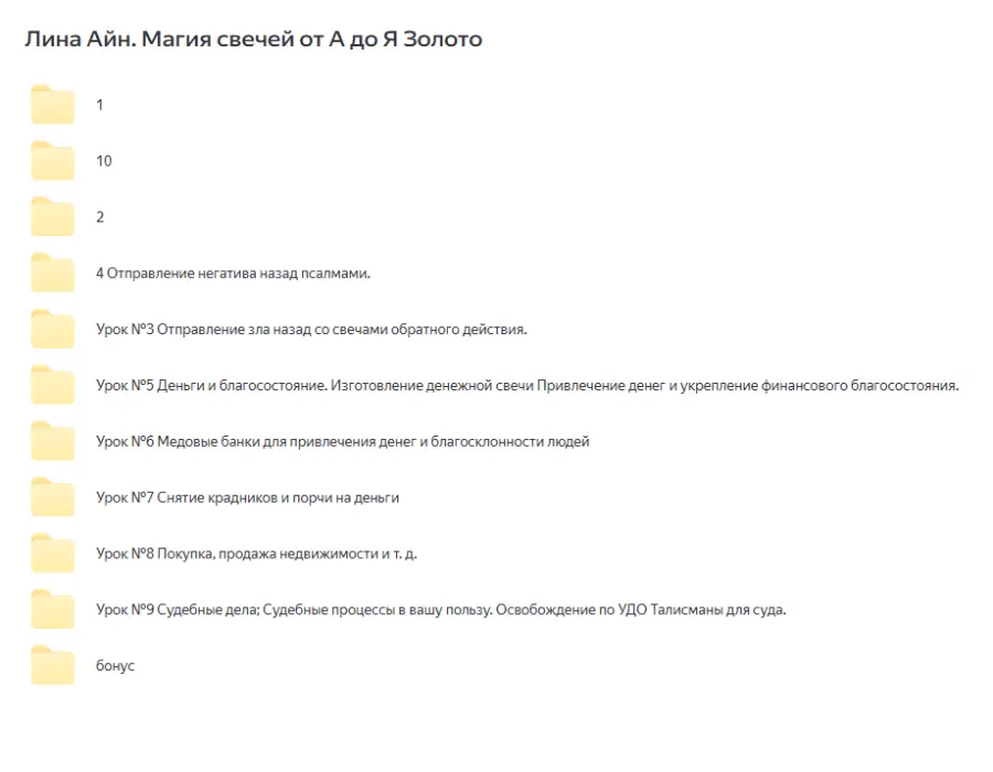 Вы находитесь на странице товара «Элара / Лина Айн - Магия свечей от А до Я. Ступень II», это материал который, мы надеемся, принесет вам пользу. Данный курс расположен на платформе «Яндекс Диск».Скриншоты с платформы на которой расположены материалы вы можете найти выше. В нашем магазине курсы доступны по самым выгодным ценам. Вы можете перейти на оригинальный продажник, после чего принять решение о покупке. Если бы вы покупали у самого автора, то данный курс вам обошелся 24900 рублей. Вы получаете этот курс, купив в нашем магазине MANY-COURSES.NET, с огромной скидкой, всего 420 рублей. Обучающий курс входит в рубрику «Эзотерика и оккультизм», вы можете поискать другие сливы курсов в этой рубрике. В нашем магазине Вы найдёте ещё много курсов от автора «Лина Айн», достаточно ввести в поиск имя автора.