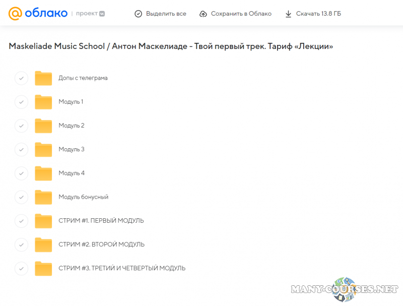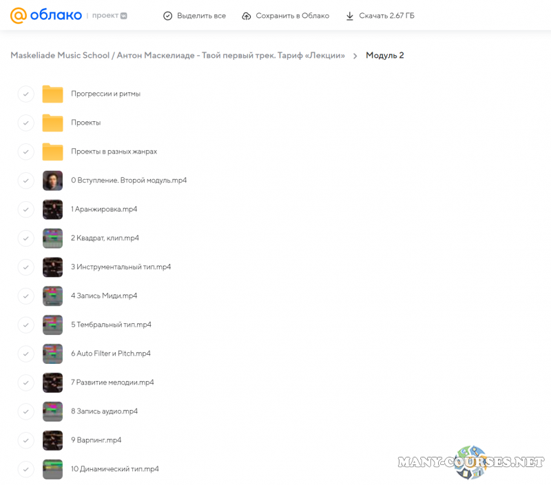 Вы находитесь на странице товара «Maskeliade Music School / Антон Маскелиаде - Твой первый трек. Тариф «Лекции»», это материал 2023 года, который, мы надеемся, принесет вам пользу. Данный курс расположен на платформе «Облако Mail».Скриншоты с платформы на которой расположены материалы вы можете найти выше. В нашем магазине курсы доступны по самым выгодным ценам. Вы можете перейти на оригинальный продажник, после чего принять решение о покупке. Если бы вы покупали у самого автора, то данный курс вам обошелся 21510 рублей. Вы получаете этот курс, купив в нашем магазине MANY-COURSES.NET, с огромной скидкой, всего 490 рублей. Обучающий курс входит в рубрику «Музыка», вы можете поискать другие сливы курсов в этой рубрике. В нашем магазине Вы найдёте ещё много курсов от автора «Антон Маскелиаде», достаточно ввести в поиск имя автора.