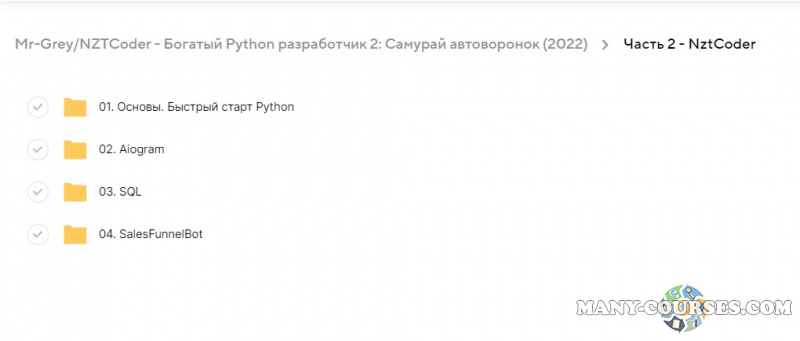Вы находитесь на странице товара «Mr-Grey/NZTCoder - Богатый Python разработчик 2: Самурай автоворонок», это материал 2022 года, который, мы надеемся, принесет вам пользу. Данный курс расположен на платформе «Облако Mail».Скриншоты с платформы на которой расположены материалы вы можете найти выше. В нашем магазине курсы доступны по самым выгодным ценам. Вы можете перейти на оригинальный продажник, после чего принять решение о покупке. Если бы вы покупали у самого автора, то данный курс вам обошелся 8500 рублей. Вы получаете этот курс, купив в нашем магазине MANY-COURSES.NET, с огромной скидкой, всего 140 рублей. Обучающий курс входит в рубрику «Программирование / Бизнес, менеджмент, продажи», вы можете поискать другие сливы курсов в этой рубрике. В нашем магазине Вы найдёте ещё много курсов от автора «Mr-Grey/NZTCoder», достаточно ввести в поиск имя автора.
