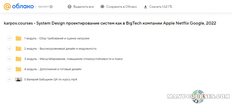 Вы находитесь на странице товара «karpov.courses - System Design проектирование систем как в BigTech компании Apple Netflix Google, 2022», это материал 2022 года, который, мы надеемся, принесет вам пользу. Данный курс расположен на платформе «Облако Mail».Скриншоты с платформы на которой расположены материалы вы можете найти выше. В нашем магазине курсы доступны по самым выгодным ценам. Вы получаете этот курс, купив в нашем магазине MANY-COURSES.NET, с огромной скидкой, всего 300 рублей. Обучающий курс входит в рубрику «Программирование», вы можете поискать другие сливы курсов в этой рубрике. В нашем магазине Вы найдёте ещё много курсов от автора «Е. Нижибицкий, В. Бабушкин», достаточно ввести в поиск имя автора.