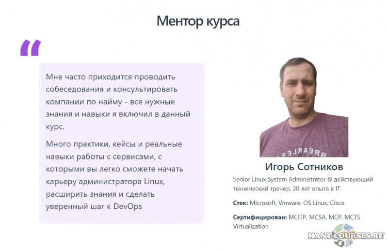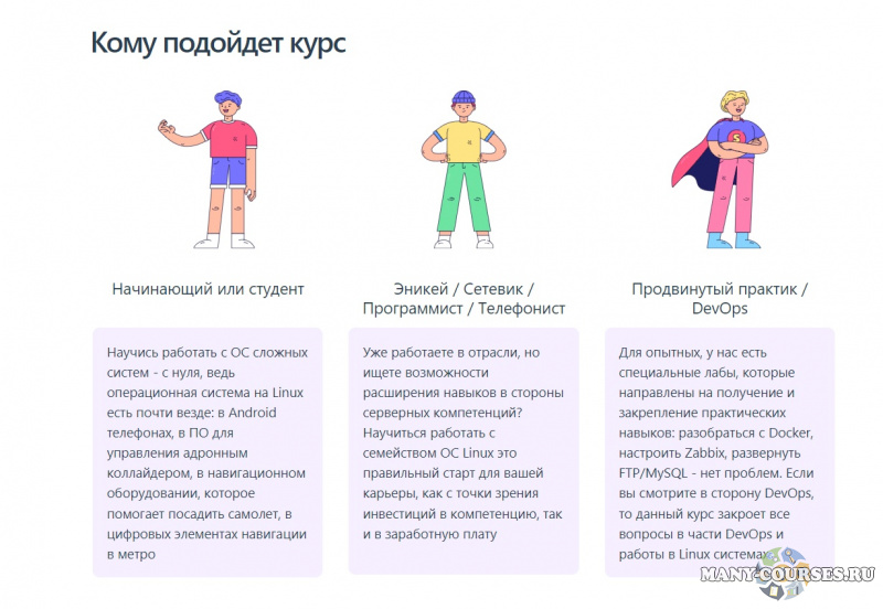 Для опытных, у нас есть специальные лабы, которые направлены на получение и закрепление практических навыков: разобраться с Docker, настроить Zabbix, развернуть FTP/MySQL - нет проблем. Если вы смотрите в сторону DevOps, то данный курс закроет все вопросы в части DevOps и работы в Linux системах