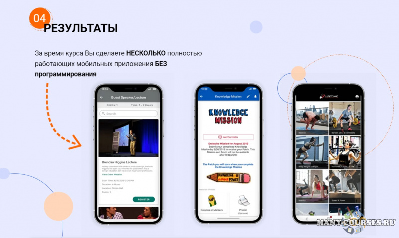 За время курса Вы сделаете НЕСКОЛЬКО полностью работающих мобильных приложения БЕЗ программирования