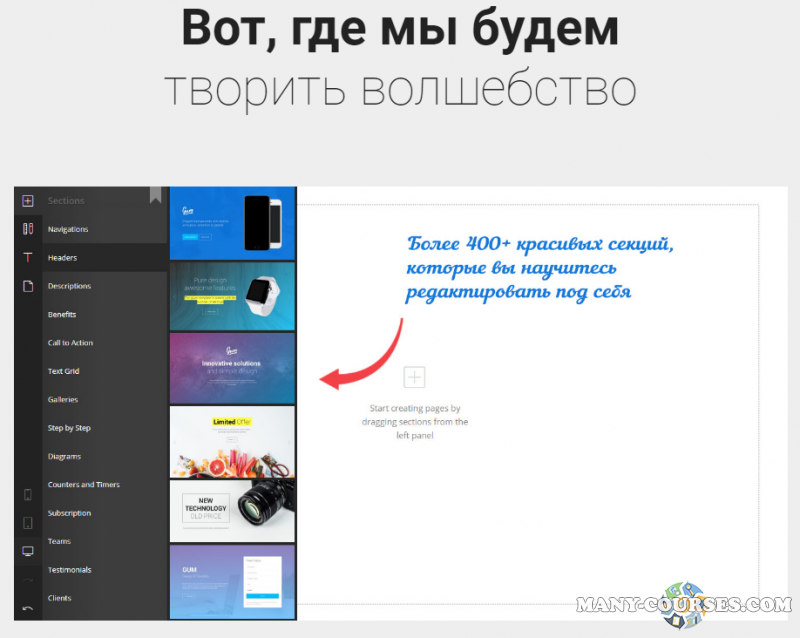 Создавайте качественные лендинги за час для себя или на заказ без знания вёрстки, дизайна, программирования и ежемесячных платежей сервисам - с помощью специального конструктора на своём домене!