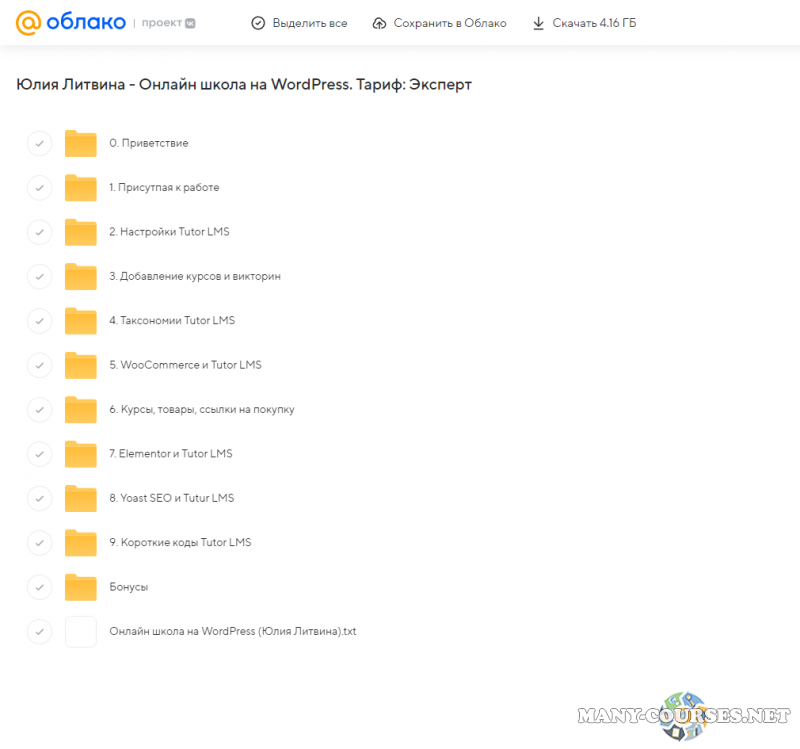 Вы находитесь на странице товара «Юлия Литвина - Онлайн школа на WordPress. Тариф: Эксперт», это материал 2023 года, который, мы надеемся, принесет вам пользу. Данный курс расположен на платформе «Облако Mail».Скриншоты с платформы на которой расположены материалы вы можете найти выше. В нашем магазине курсы доступны по самым выгодным ценам. Вы можете перейти на оригинальный продажник, после чего принять решение о покупке. Если бы вы покупали у самого автора, то данный курс вам обошелся 14900 рублей. Вы получаете этот курс, купив в нашем магазине MANY-COURSES.NET, с огромной скидкой, всего 900 рублей. Обучающий курс входит в рубрику «Создание сайтов / Бизнес, менеджмент, продажи», вы можете поискать другие сливы курсов в этой рубрике. В нашем магазине Вы найдёте ещё много курсов от автора «Юлия Литвина», достаточно ввести в поиск имя автора.