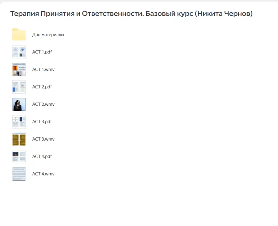 Вы находитесь на странице товара «Никита Чернов - Терапия Принятия и Ответственности. Базовый курс», это материал который, мы надеемся, принесет вам пользу. Данный курс расположен на платформе «Яндекс Диск».Скриншоты с платформы на которой расположены материалы вы можете найти выше. В нашем магазине курсы доступны по самым выгодным ценам. Вы можете перейти на оригинальный продажник, после чего принять решение о покупке. Вы получаете этот курс, купив в нашем магазине MANY-COURSES.NET, с огромной скидкой, всего 390 рублей. Обучающий курс входит в рубрику «Психология», вы можете поискать другие сливы курсов в этой рубрике. В нашем магазине Вы найдёте ещё много курсов от автора «Никита Чернов», достаточно ввести в поиск имя автора.
