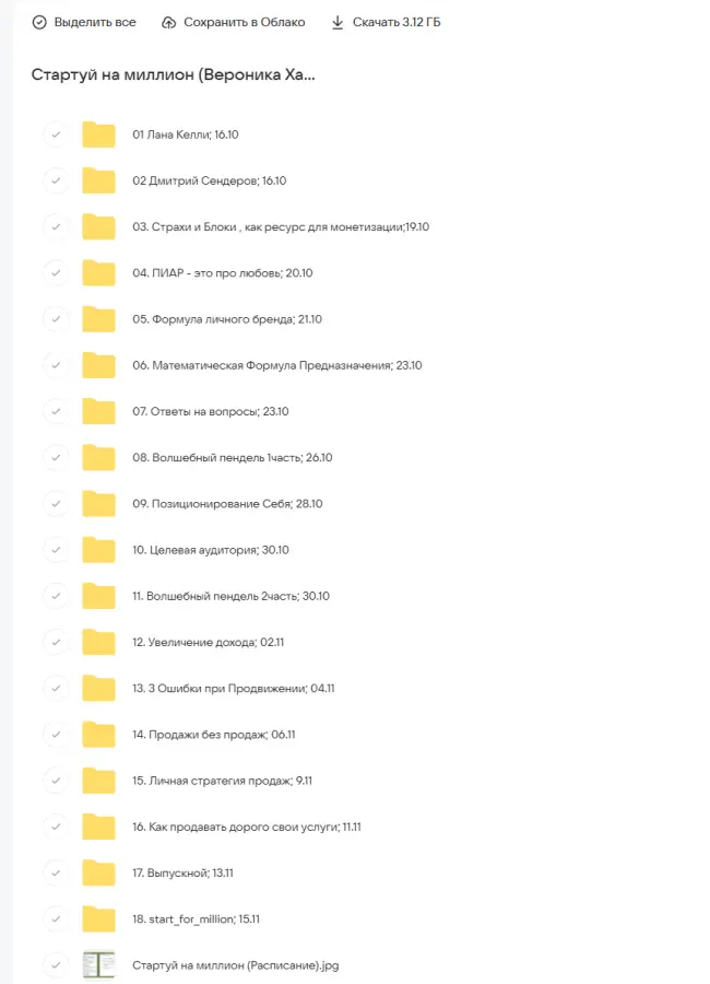 Вы находитесь на странице товара «Вероника Хацкевич - Стартуй на миллион», это материал который, мы надеемся, принесет вам пользу. Данный курс расположен на платформе «Облако Mail».Скриншоты с платформы на которой расположены материалы вы можете найти выше. В нашем магазине курсы доступны по самым выгодным ценам. Вы можете перейти на оригинальный продажник, после чего принять решение о покупке. Если бы вы покупали у самого автора, то данный курс вам обошелся 57000 рублей. Вы получаете этот курс, купив в нашем магазине MANY-COURSES.NET, с огромной скидкой, всего 290 рублей. Обучающий курс входит в рубрику «Психология», вы можете поискать другие сливы курсов в этой рубрике. В нашем магазине Вы найдёте ещё много курсов от автора «Вероника Хацкевич», достаточно ввести в поиск имя автора.