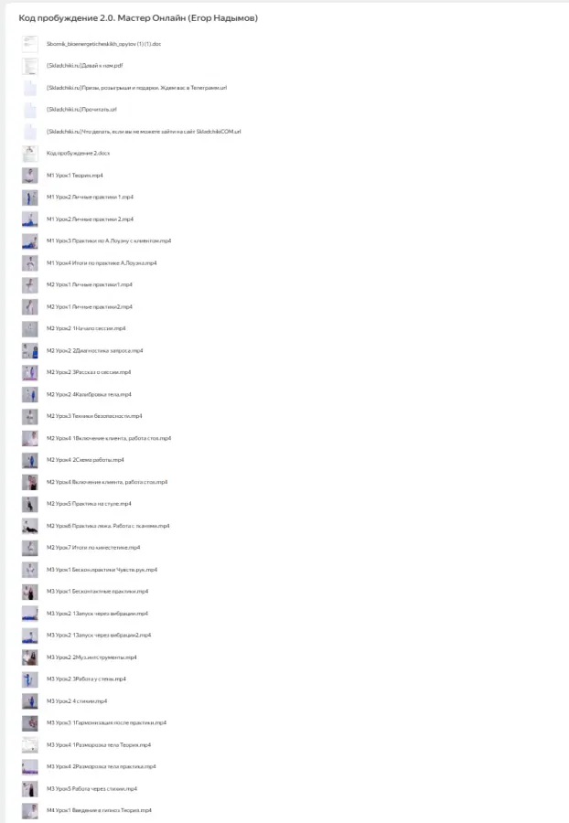 Вы находитесь на странице товара «Егор Надымов - Код пробуждение 2.0. Мастер Онлайн», это материал который, мы надеемся, принесет вам пользу. Данный курс расположен на платформе «Яндекс Диск».Скриншоты с платформы на которой расположены материалы вы можете найти выше. В нашем магазине курсы доступны по самым выгодным ценам. Вы можете перейти на оригинальный продажник, после чего принять решение о покупке. Вы получаете этот курс, купив в нашем магазине MANY-COURSES.NET, с огромной скидкой, всего 3389 рублей. Обучающий курс входит в рубрику «Психология», вы можете поискать другие сливы курсов в этой рубрике. В нашем магазине Вы найдёте ещё много курсов от автора «Егор Надымов», достаточно ввести в поиск имя автора.