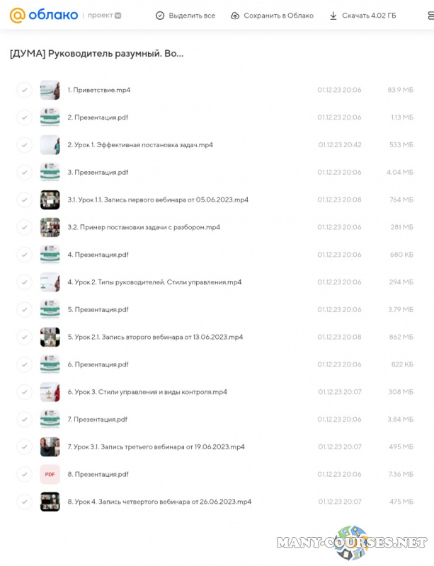 Вы находитесь на странице товара «ДУМА / Ольга Паратнова - Руководитель разумный. Boss Sapiens. Тариф Стандарт», это материал 2023 года, который, мы надеемся, принесет вам пользу. Данный курс расположен на платформе «Облако Mail».Скриншоты с платформы на которой расположены материалы вы можете найти выше. В нашем магазине курсы доступны по самым выгодным ценам. Вы можете перейти на оригинальный продажник, после чего принять решение о покупке. Если бы вы покупали у самого автора, то данный курс вам обошелся 35000 рублей. Вы получаете этот курс, купив в нашем магазине MANY-COURSES.NET, с огромной скидкой, всего 680 рублей. Обучающий курс входит в рубрику «Психология / Эзотерика и оккультизм», вы можете поискать другие сливы курсов в этой рубрике. В нашем магазине Вы найдёте ещё много курсов от автора «Ольга Паратнова», достаточно ввести в поиск имя автора.