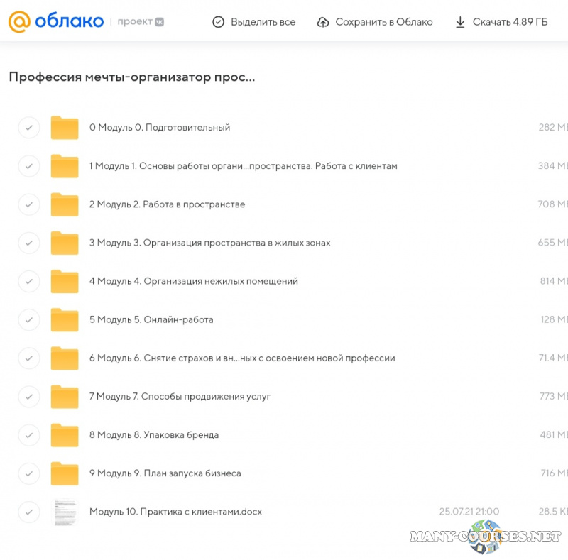 Вы находитесь на странице товара «Алсу Мухамедшина - Организатор пространства. Тариф бизнес», это материал 2021 года, который, мы надеемся, принесет вам пользу. Данный курс расположен на платформе «Облако Mail».Скриншоты с платформы на которой расположены материалы вы можете найти выше. В нашем магазине курсы доступны по самым выгодным ценам. Вы можете перейти на оригинальный продажник, после чего принять решение о покупке. Если бы вы покупали у самого автора, то данный курс вам обошелся 41000 рублей. Вы получаете этот курс, купив в нашем магазине MANY-COURSES.NET, с огромной скидкой, всего 990 рублей. Обучающий курс входит в рубрику «Психология», вы можете поискать другие сливы курсов в этой рубрике. В нашем магазине Вы найдёте ещё много курсов от автора «Алсу Мухамедшина», достаточно ввести в поиск имя автора.