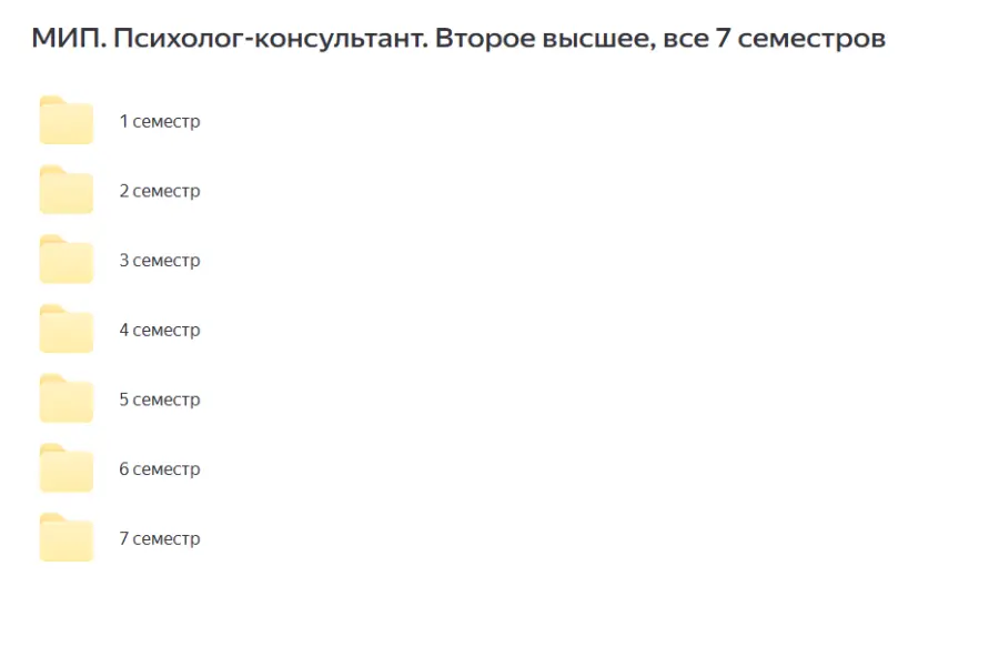 Вы находитесь на странице товара «Московский Институт Психоанализа - Психолог-консультант. Второе высшее, все 7 семестров», это материал который, мы надеемся, принесет вам пользу. Данный курс расположен на платформе «Яндекс Диск».Скриншоты с платформы на которой расположены материалы вы можете найти выше. В нашем магазине курсы доступны по самым выгодным ценам. Вы получаете этот курс, купив в нашем магазине MANY-COURSES.NET, с огромной скидкой, всего 1300 рублей. Обучающий курс входит в рубрику «Психология», вы можете поискать другие сливы курсов в этой рубрике. В нашем магазине Вы найдёте ещё много курсов от автора «», достаточно ввести в поиск имя автора.