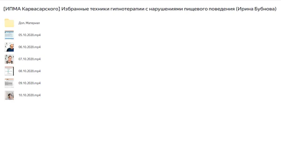 Вы находитесь на странице товара «ИПМА Карвасарского / Ирина Бубнова - Избранные техники гипнотерапии с нарушениями пищевого поведения», это материал 2020 года, который, мы надеемся, принесет вам пользу. Данный курс расположен на платформе «Яндекс Диск».Скриншоты с платформы на которой расположены материалы вы можете найти выше. В нашем магазине курсы доступны по самым выгодным ценам. Вы получаете этот курс, купив в нашем магазине MANY-COURSES.NET, с огромной скидкой, всего 390 рублей. Обучающий курс входит в рубрику «Психология», вы можете поискать другие сливы курсов в этой рубрике. В нашем магазине Вы найдёте ещё много курсов от автора «Ирина Бубнова», достаточно ввести в поиск имя автора.
