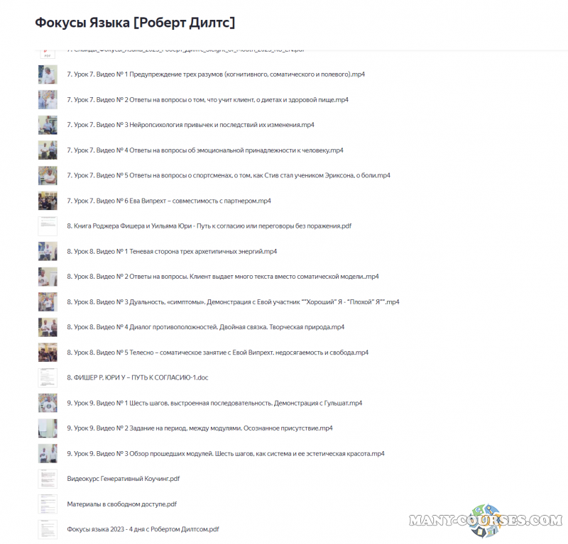 Вы находитесь на странице товара «Роберт Дилтс - Курс Фокусы Языка (Февраль 2023)», это материал 2023 года, который, мы надеемся, принесет вам пользу. Данный курс расположен на платформе «Яндекс Диск».Скриншоты с платформы на которой расположены материалы вы можете найти выше. В нашем магазине курсы доступны по самым выгодным ценам. Вы можете перейти на оригинальный продажник, после чего принять решение о покупке. Если бы вы покупали у самого автора, то данный курс вам обошелся 46500 рублей. Вы получаете этот курс, купив в нашем магазине MANY-COURSES.NET, с огромной скидкой, всего 200 рублей. Обучающий курс входит в рубрику «Саморазвитие и мотивация / Эзотерика и оккультизм / Психология», вы можете поискать другие сливы курсов в этой рубрике. В нашем магазине Вы найдёте ещё много курсов от автора «Роберт Дилтс», достаточно ввести в поиск имя автора.