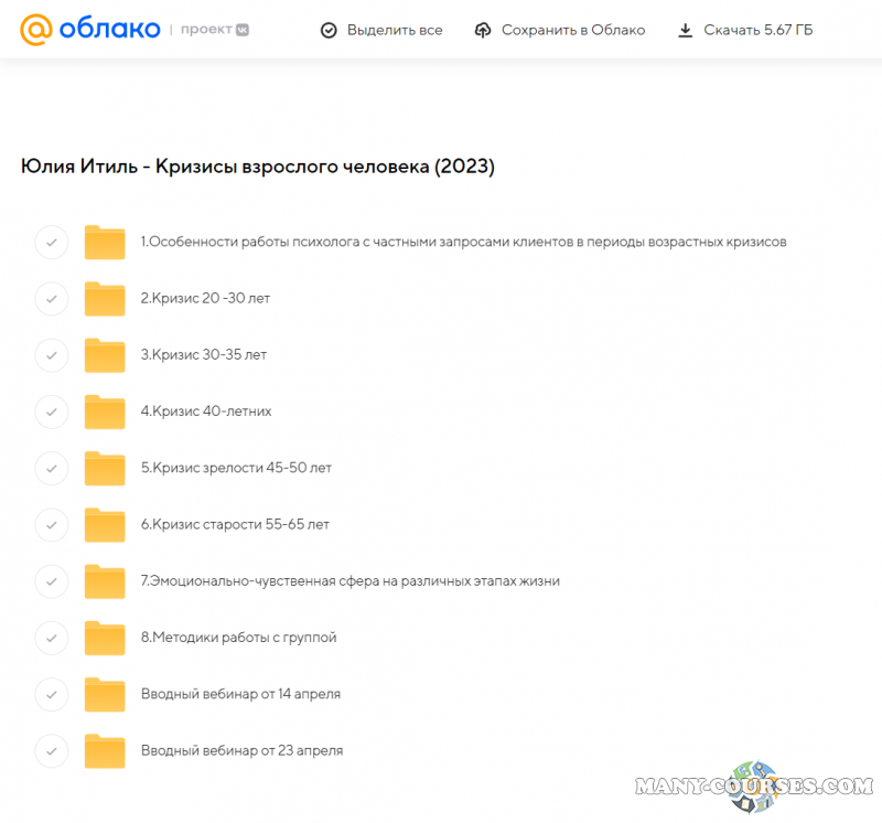 Вы находитесь на странице товара «Юлия Итиль - Кризисы взрослого человека», это материал 2023 года, который, мы надеемся, принесет вам пользу. Данный курс расположен на платформе «Облако Mail».Скриншоты с платформы на которой расположены материалы вы можете найти выше. В нашем магазине курсы доступны по самым выгодным ценам. Вы можете перейти на оригинальный продажник, после чего принять решение о покупке. Вы получаете этот курс, купив в нашем магазине MANY-COURSES.NET, с огромной скидкой, всего 490 рублей. Обучающий курс входит в рубрику «Саморазвитие и мотивация / Эзотерика и оккультизм / Психология», вы можете поискать другие сливы курсов в этой рубрике. В нашем магазине Вы найдёте ещё много курсов от автора «Юлия Итиль», достаточно ввести в поиск имя автора.