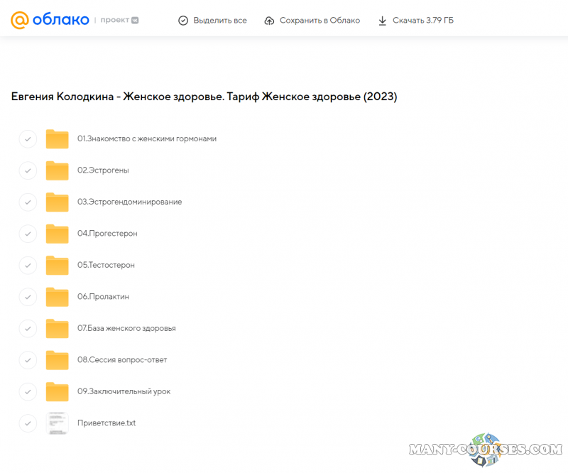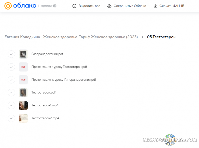 Вы находитесь на странице товара «Евгения Колодкина - Женское здоровье. Тариф Женское здоровье», это материал 2023 года, который, мы надеемся, принесет вам пользу. Данный курс расположен на платформе «Облако Mail».Скриншоты с платформы на которой расположены материалы вы можете найти выше. В нашем магазине курсы доступны по самым выгодным ценам. Вы можете перейти на оригинальный продажник, после чего принять решение о покупке. Если бы вы покупали у самого автора, то данный курс вам обошелся 9990 рублей. Вы получаете этот курс, купив в нашем магазине MANY-COURSES.NET, с огромной скидкой, всего 200 рублей. Обучающий курс входит в рубрику «Саморазвитие и мотивация / Эзотерика и оккультизм / Психология», вы можете поискать другие сливы курсов в этой рубрике. В нашем магазине Вы найдёте ещё много курсов от автора «Евгения Колодкина», достаточно ввести в поиск имя автора.