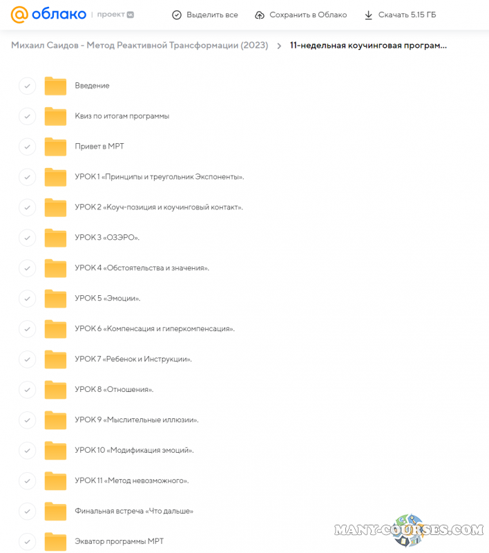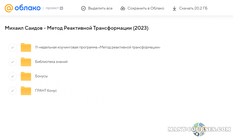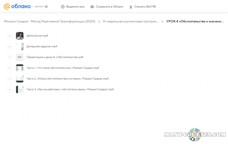 Вы находитесь на странице товара «Михаил Саидов - Метод Реактивной Трансформации (2023)», это материал 2023 года, который, мы надеемся, принесет вам пользу. Данный курс расположен на платформе «Облако Mail».Скриншоты с платформы на которой расположены материалы вы можете найти выше. В нашем магазине курсы доступны по самым выгодным ценам. Вы можете перейти на оригинальный продажник, после чего принять решение о покупке. Если бы вы покупали у самого автора, то данный курс вам обошелся 73000 рублей. Вы получаете этот курс, купив в нашем магазине MANY-COURSES.NET, с огромной скидкой, всего 250 рублей. Обучающий курс входит в рубрику «Саморазвитие и мотивация / Эзотерика и оккультизм / Психология», вы можете поискать другие сливы курсов в этой рубрике. В нашем магазине Вы найдёте ещё много курсов от автора «Михаил Саидов», достаточно ввести в поиск имя автора.