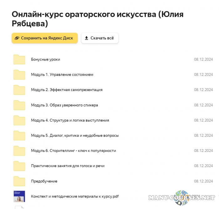 Вы находитесь на странице товара «Король говорит / Юлия Рябцева - Онлайн-курс ораторского искусства. Тариф Эконом», это материал 2024 года, который, мы надеемся, принесет вам пользу. Данный курс расположен на платформе «Яндекс Диск».Скриншоты с платформы на которой расположены материалы вы можете найти выше. В нашем магазине курсы доступны по самым выгодным ценам. Вы можете перейти на оригинальный продажник, после чего принять решение о покупке. Вы получаете этот курс, купив в нашем магазине MANY-COURSES.NET, с огромной скидкой, всего 1890 рублей. Обучающий курс входит в рубрику «Саморазвитие и мотивация», вы можете поискать другие сливы курсов в этой рубрике. В нашем магазине Вы найдёте ещё много курсов от автора «Юлия Рябцева», достаточно ввести в поиск имя автора.