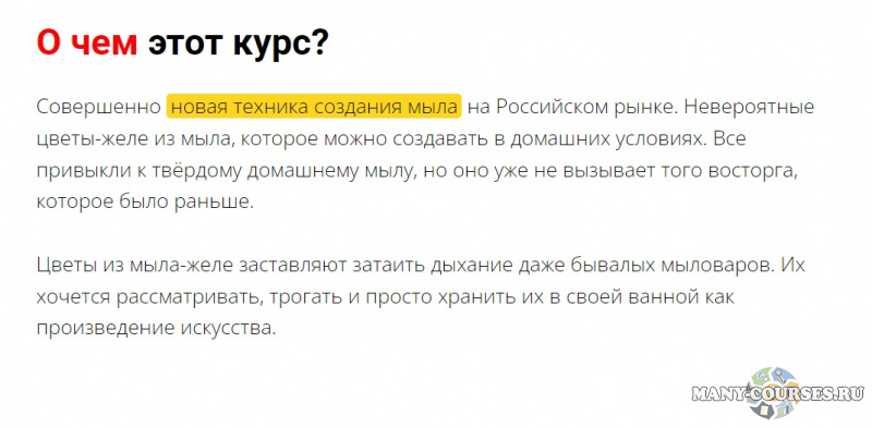 Совершенно новая техника создания мыла на Российском рынке. Невероятные цветы-желе из мыла, которое можно создавать в домашних условиях. Все привыкли к твёрдому домашнему мылу, но оно уже не вызывает того восторга, которое было раньше.