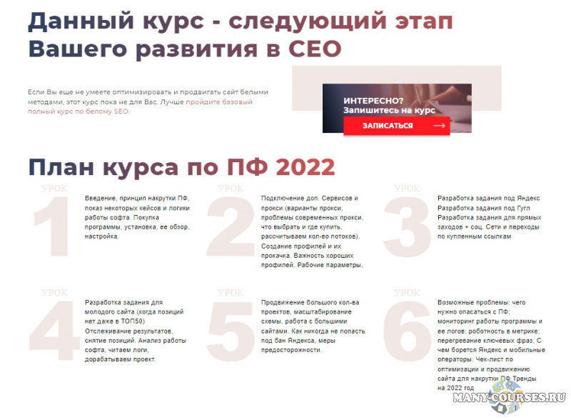 Вы находитесь на странице товара «Дмитрий Ярошок - Обучение накрутке поведенческих факторов», это материал 2022 года, который, мы надеемся, принесет вам пользу. Данный курс расположен на платформе «Облако Mail».Скриншоты с платформы на которой расположены материалы вы можете найти выше. В нашем магазине курсы доступны по самым выгодным ценам. Вы можете перейти на оригинальный продажник, после чего принять решение о покупке. Если бы вы покупали у самого автора, то данный курс вам обошелся 25900 рублей. Вы получаете этот курс, купив в нашем магазине MANY-COURSES.NET, с огромной скидкой, всего 190 рублей. Обучающий курс входит в рубрику «SEO и SMM», вы можете поискать другие сливы курсов в этой рубрике. В нашем магазине Вы найдёте ещё много курсов от автора «Дмитрий Ярошок», достаточно ввести в поиск имя автора.