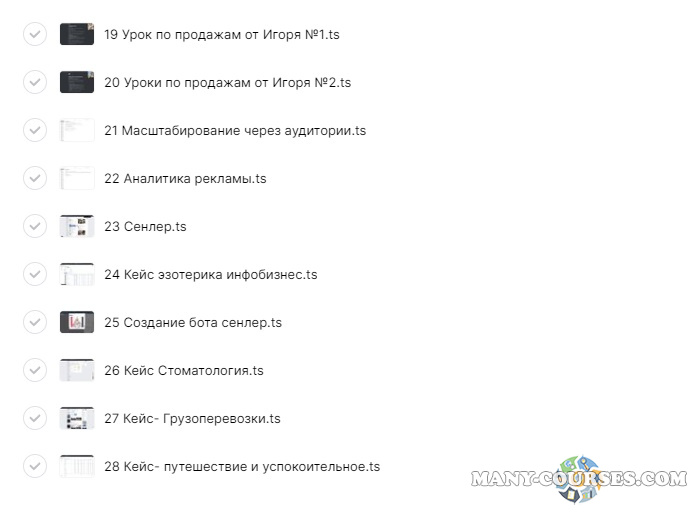 Каждый из инфопродуктов который представлен в нашем магазине приобретался в складчину, соответственно и цена намного ниже чем у автора. Для вас доступна полная запись инфопродукта со всеми раздаточными материалами для самостоятельного прохождения, но без обратной связи от автора.