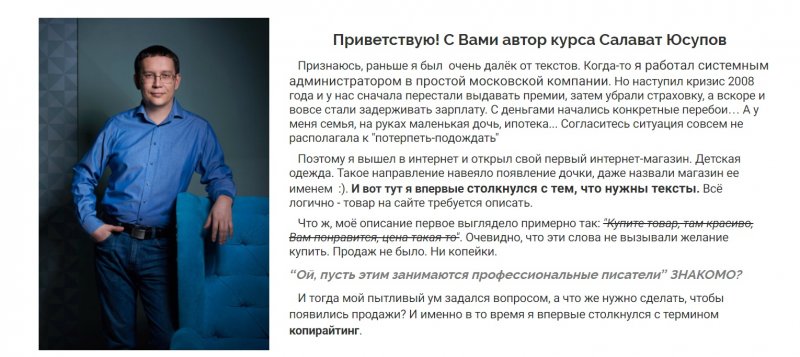 Вы находитесь на странице товара «Салават Юсупов - Нейрокопирайтинг на миллион (2020)», это материал 2020 года, который, мы надеемся, принесет вам пользу. Скриншоты с платформы на которой расположены материалы вы можете найти выше. В нашем магазине курсы доступны по самым выгодным ценам. Вы можете перейти на оригинальный продажник, после чего принять решение о покупке. Если бы вы покупали у самого автора, то данный курс вам обошелся 4990 рублей. Вы получаете этот курс, купив в нашем магазине MANY-COURSES.NET, с огромной скидкой, всего 99 рублей. Обучающий курс входит в рубрику «SEO и SMM», вы можете поискать другие сливы курсов в этой рубрике. В нашем магазине Вы найдёте ещё много курсов от автора «Салават Юсупов», достаточно ввести в поиск имя автора.