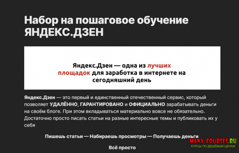 Вы находитесь на странице товара «Игорь Градов - Пошаговое обучение Яндекс.Дзен», это материал 2021 года, который, мы надеемся, принесет вам пользу. Данный курс расположен на платформе «Облако Mail».Скриншоты с платформы на которой расположены материалы вы можете найти выше. В нашем магазине курсы доступны по самым выгодным ценам. Вы можете перейти на оригинальный продажник, после чего принять решение о покупке. Если бы вы покупали у самого автора, то данный курс вам обошелся 9700 рублей. Вы получаете этот курс, купив в нашем магазине MANY-COURSES.NET, с огромной скидкой, всего 100 рублей. Обучающий курс входит в рубрику «SEO и SMM», вы можете поискать другие сливы курсов в этой рубрике. В нашем магазине Вы найдёте ещё много курсов от автора «Игорь Градов», достаточно ввести в поиск имя автора.