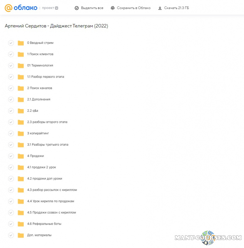 Вы находитесь на странице товара «Артемий Сердитов - Дайджест Телеграм», это материал 2022 года, который, мы надеемся, принесет вам пользу. Данный курс расположен на платформе «Облако Mail».Скриншоты с платформы на которой расположены материалы вы можете найти выше. В нашем магазине курсы доступны по самым выгодным ценам. Вы можете перейти на оригинальный продажник, после чего принять решение о покупке. Если бы вы покупали у самого автора, то данный курс вам обошелся 20000 рублей. Вы получаете этот курс, купив в нашем магазине MANY-COURSES.NET, с огромной скидкой, всего 290 рублей. Обучающий курс входит в рубрику «SEO и SMM / Telegram / Бизнес, менеджмент, продажи / Реклама и маркетинг», вы можете поискать другие сливы курсов в этой рубрике. В нашем магазине Вы найдёте ещё много курсов от автора «Артемий Сердитов», достаточно ввести в поиск имя автора.