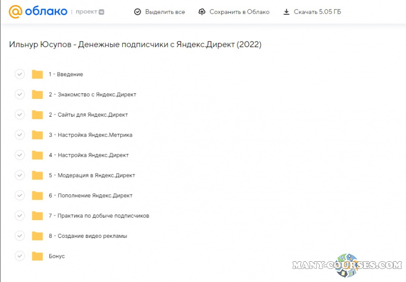 Вы находитесь на странице товара «Ильнур Юсупов - Денежные подписчики с Яндекс.Директ», это материал 2022 года, который, мы надеемся, принесет вам пользу. Данный курс расположен на платформе «Облако Mail».Скриншоты с платформы на которой расположены материалы вы можете найти выше. В нашем магазине курсы доступны по самым выгодным ценам. Вы можете перейти на оригинальный продажник, после чего принять решение о покупке. Если бы вы покупали у самого автора, то данный курс вам обошелся 4990 рублей. Вы получаете этот курс, купив в нашем магазине MANY-COURSES.NET, с огромной скидкой, всего 149 рублей. Обучающий курс входит в рубрику «SEO и SMM / Реклама и маркетинг», вы можете поискать другие сливы курсов в этой рубрике. В нашем магазине Вы найдёте ещё много курсов от автора «Ильнур Юсупов», достаточно ввести в поиск имя автора.