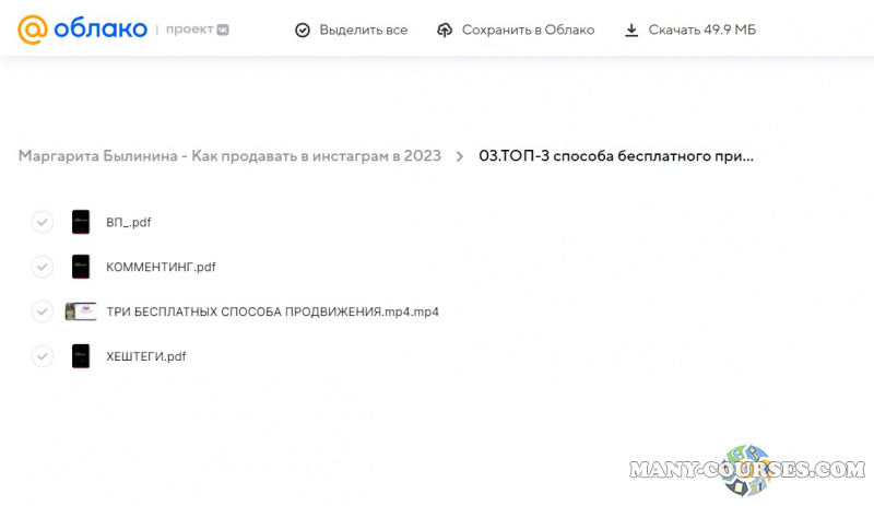Вы находитесь на странице товара «Маргарита Былинина - Как продавать в инстаграм», это материал 2022 года, который, мы надеемся, принесет вам пользу. Данный курс расположен на платформе «Облако Mail».Скриншоты с платформы на которой расположены материалы вы можете найти выше. В нашем магазине курсы доступны по самым выгодным ценам. Вы получаете этот курс, купив в нашем магазине MANY-COURSES.NET, с огромной скидкой, всего 200 рублей. Обучающий курс входит в рубрику «SEO и SMM / Instagram / Бизнес, менеджмент, продажи», вы можете поискать другие сливы курсов в этой рубрике. В нашем магазине Вы найдёте ещё много курсов от автора «Маргарита Былинина», достаточно ввести в поиск имя автора.