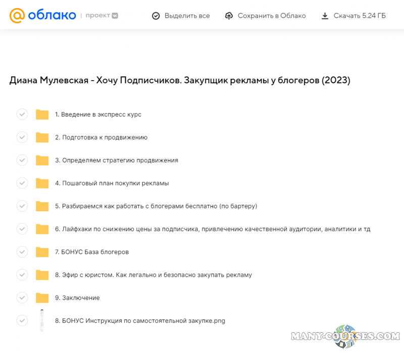 Вы находитесь на странице товара «Диана Мулевская - Хочу Подписчиков. Закупщик рекламы у блогеров», это материал 2023 года, который, мы надеемся, принесет вам пользу. Данный курс расположен на платформе «Облако Mail».Скриншоты с платформы на которой расположены материалы вы можете найти выше. В нашем магазине курсы доступны по самым выгодным ценам. Вы получаете этот курс, купив в нашем магазине MANY-COURSES.NET, с огромной скидкой, всего 149 рублей. Обучающий курс входит в рубрику «SEO и SMM / Бизнес, менеджмент, продажи / Реклама и маркетинг», вы можете поискать другие сливы курсов в этой рубрике. В нашем магазине Вы найдёте ещё много курсов от автора «Диана Мулевская», достаточно ввести в поиск имя автора.