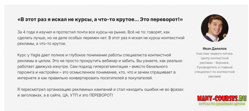 Вы находитесь на странице товара «Yagla / Александр Алимов, Никита Глинин - Таргетированный Гиперсегментатор (2020)», это материал 2021 года, который, мы надеемся, принесет вам пользу. Данный курс расположен на платформе «Яндекс Диск».Скриншоты с платформы на которой расположены материалы вы можете найти выше. В нашем магазине курсы доступны по самым выгодным ценам. Вы можете перейти на оригинальный продажник, после чего принять решение о покупке. Если бы вы покупали у самого автора, то данный курс вам обошелся 11900 рублей. Вы получаете этот курс, купив в нашем магазине MANY-COURSES.NET, с огромной скидкой, всего 129 рублей. Обучающий курс входит в рубрику «SEO и SMM / Вконтакте (VK)», вы можете поискать другие сливы курсов в этой рубрике. В нашем магазине Вы найдёте ещё много курсов от автора «Yagla / Александр Алимов, Никита Глинин», достаточно ввести в поиск имя автора.