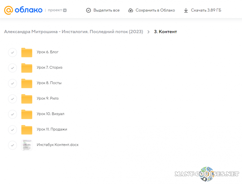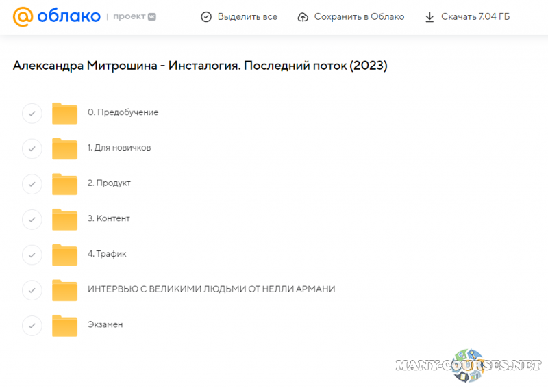 Вы находитесь на странице товара «Александра Митрошина - Инсталогия. Последний поток (2023)», это материал 2023 года, который, мы надеемся, принесет вам пользу. Данный курс расположен на платформе «Облако Mail».Скриншоты с платформы на которой расположены материалы вы можете найти выше. В нашем магазине курсы доступны по самым выгодным ценам. Вы можете перейти на оригинальный продажник, после чего принять решение о покупке. Если бы вы покупали у самого автора, то данный курс вам обошелся 54900 рублей. Вы получаете этот курс, купив в нашем магазине MANY-COURSES.NET, с огромной скидкой, всего 300 рублей. Обучающий курс входит в рубрику «SEO и SMM / Instagram», вы можете поискать другие сливы курсов в этой рубрике. В нашем магазине Вы найдёте ещё много курсов от автора «Александра Митрошина», достаточно ввести в поиск имя автора.