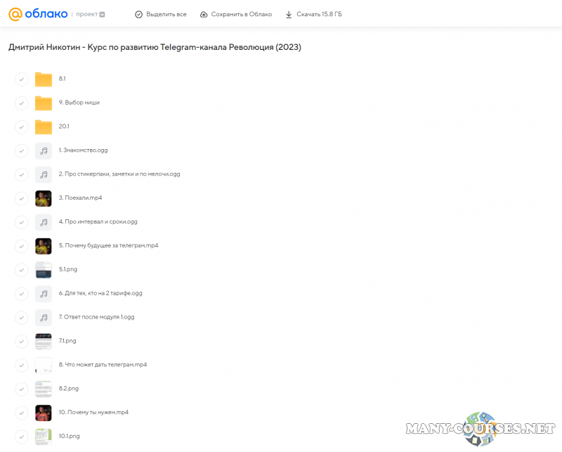 Вы находитесь на странице товара «Дмитрий Никотин - Курс по развитию Telegram-канала Революция (2023)», это материал 2023 года, который, мы надеемся, принесет вам пользу. Данный курс расположен на платформе «Облако Mail».Скриншоты с платформы на которой расположены материалы вы можете найти выше. В нашем магазине курсы доступны по самым выгодным ценам. Вы можете перейти на оригинальный продажник, после чего принять решение о покупке. Если бы вы покупали у самого автора, то данный курс вам обошелся 9990 рублей. Вы получаете этот курс, купив в нашем магазине MANY-COURSES.NET, с огромной скидкой, всего 200 рублей. Обучающий курс входит в рубрику «SEO и SMM / Telegram / Бизнес, менеджмент, продажи», вы можете поискать другие сливы курсов в этой рубрике. В нашем магазине Вы найдёте ещё много курсов от автора «Дмитрий Никотин», достаточно ввести в поиск имя автора.