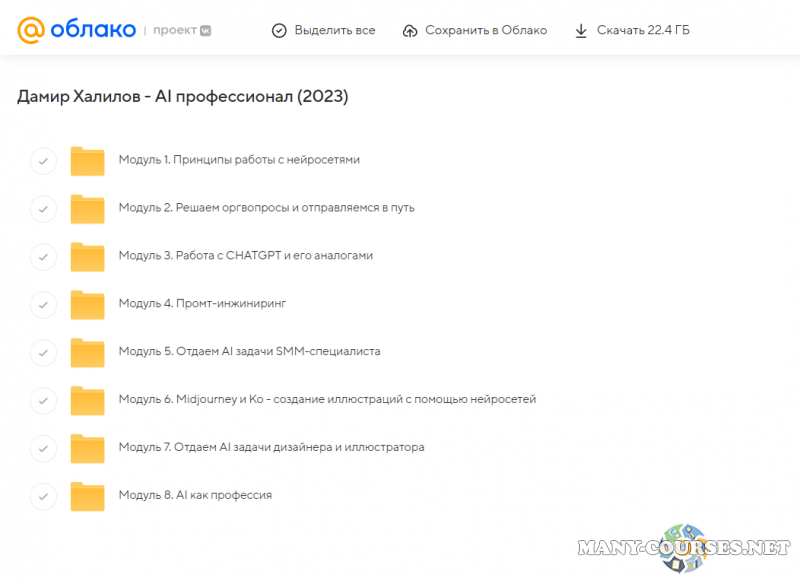 Вы находитесь на странице товара «Дамир Халилов - AI профессионал (2023)», это материал 2023 года, который, мы надеемся, принесет вам пользу. Данный курс расположен на платформе «Облако Mail».Скриншоты с платформы на которой расположены материалы вы можете найти выше. В нашем магазине курсы доступны по самым выгодным ценам. Вы можете перейти на оригинальный продажник, после чего принять решение о покупке. Если бы вы покупали у самого автора, то данный курс вам обошелся 61900 рублей. Вы получаете этот курс, купив в нашем магазине MANY-COURSES.NET, с огромной скидкой, всего 380 рублей. Обучающий курс входит в рубрику «SEO и SMM», вы можете поискать другие сливы курсов в этой рубрике. В нашем магазине Вы найдёте ещё много курсов от автора «Дамир Халилов», достаточно ввести в поиск имя автора.