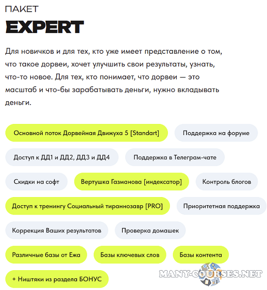Пакет EXPERT – Для новичков и для тех, кто уже имеет представление о том, что такое дорвеи, хочет улучшить свои результаты, узнать, что-то новое. Для тех, кто понимает, что дорвеи — это масштаб и что-бы зарабатывать деньги, нужно вкладывать деньги.