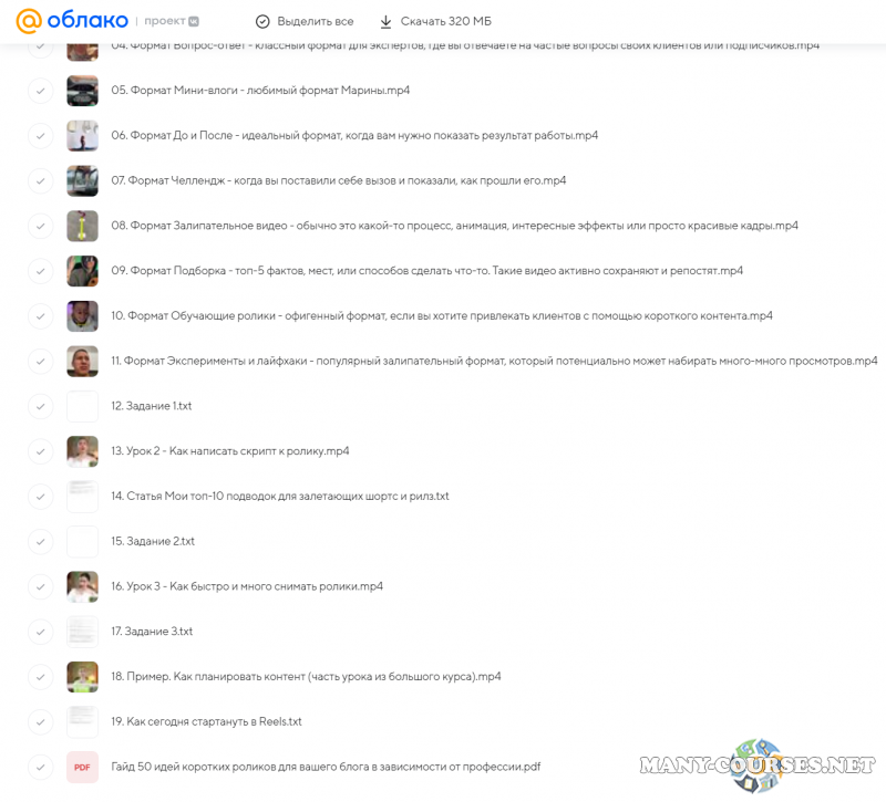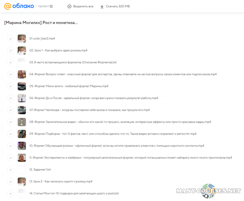 Вы находитесь на странице товара «Марина Могилко - Рост и монетизация с помощью Reels и Shorts», это материал 2023 года, который, мы надеемся, принесет вам пользу. Данный курс расположен на платформе «Облако Mail».Скриншоты с платформы на которой расположены материалы вы можете найти выше. В нашем магазине курсы доступны по самым выгодным ценам. Вы можете перейти на оригинальный продажник, после чего принять решение о покупке. Если бы вы покупали у самого автора, то данный курс вам обошелся 990 рублей. Вы получаете этот курс, купив в нашем магазине MANY-COURSES.NET, с огромной скидкой, всего 100 рублей. Обучающий курс входит в рубрику «SEO и SMM», вы можете поискать другие сливы курсов в этой рубрике. В нашем магазине Вы найдёте ещё много курсов от автора «Марина Могилко», достаточно ввести в поиск имя автора.