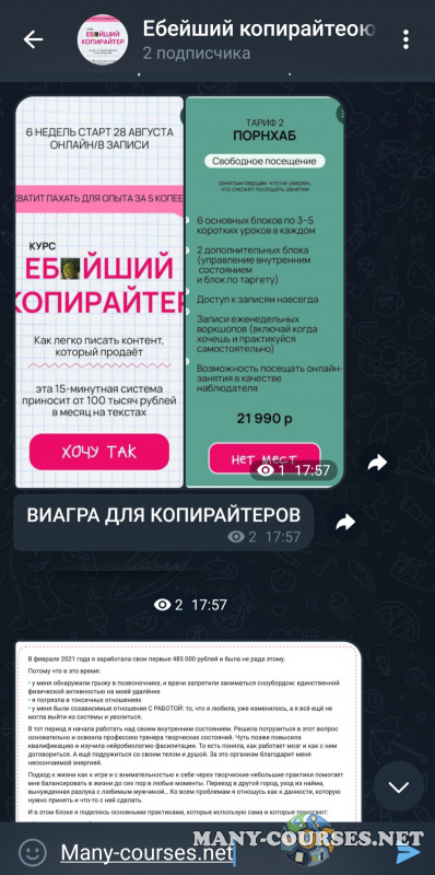 ✍🏻 По всем вопросам, в том числе с оплатой и получением - писать в Telegram (кликабельно), в чат на сайте (в нижнем правом углу) или на почту admin@many-courses.net Мы всегда на связи!