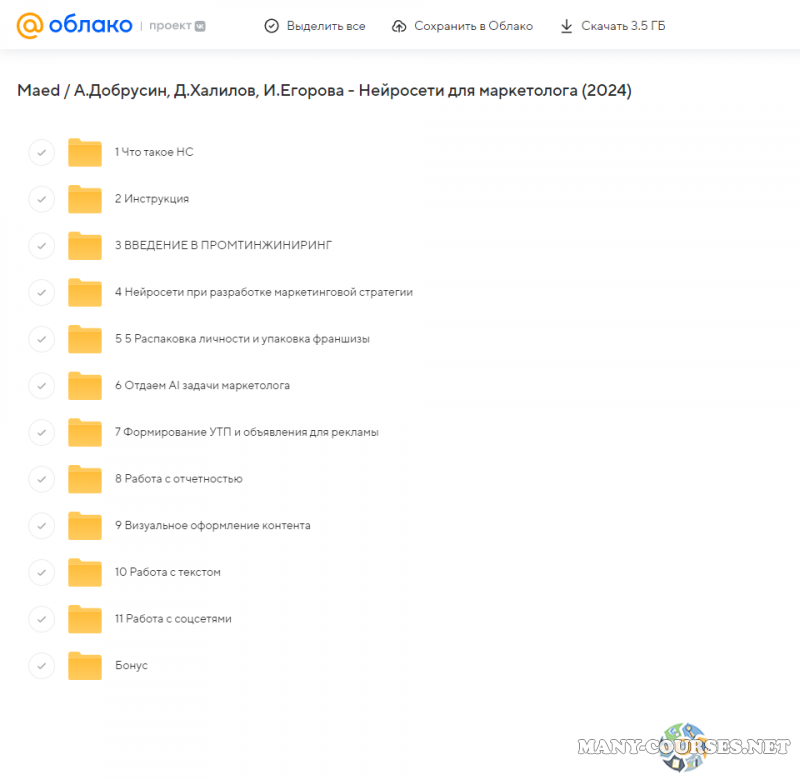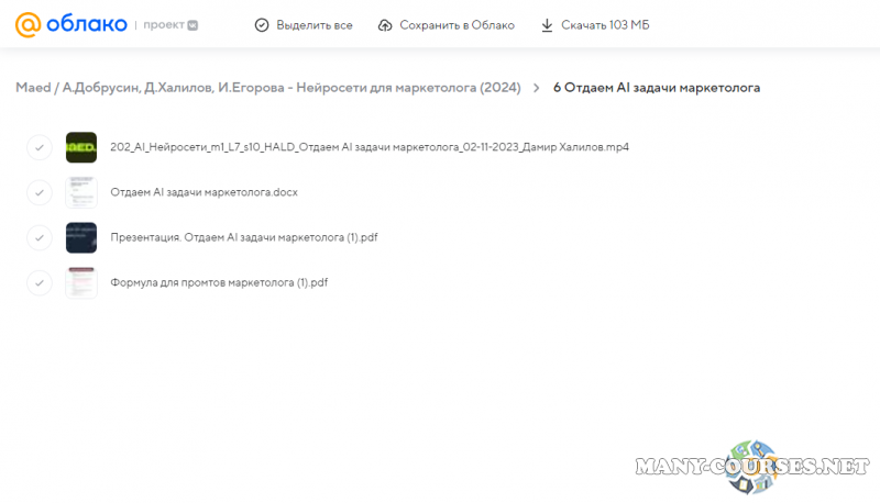 Вы находитесь на странице товара «Maed / А.Добрусин, Д.Халилов, И.Егорова - Нейросети для маркетолога (2024)», это материал 2024 года, который, мы надеемся, принесет вам пользу. Данный курс расположен на платформе «Облако Mail».Скриншоты с платформы на которой расположены материалы вы можете найти выше. В нашем магазине курсы доступны по самым выгодным ценам. Вы можете перейти на оригинальный продажник, после чего принять решение о покупке. Если бы вы покупали у самого автора, то данный курс вам обошелся 15000 рублей. Вы получаете этот курс, купив в нашем магазине MANY-COURSES.NET, с огромной скидкой, всего 190 рублей. Обучающий курс входит в рубрику «SEO и SMM / Реклама и маркетинг», вы можете поискать другие сливы курсов в этой рубрике. В нашем магазине Вы найдёте ещё много курсов от автора «А.Добрусин, Д.Халилов, И.Егорова», достаточно ввести в поиск имя автора.