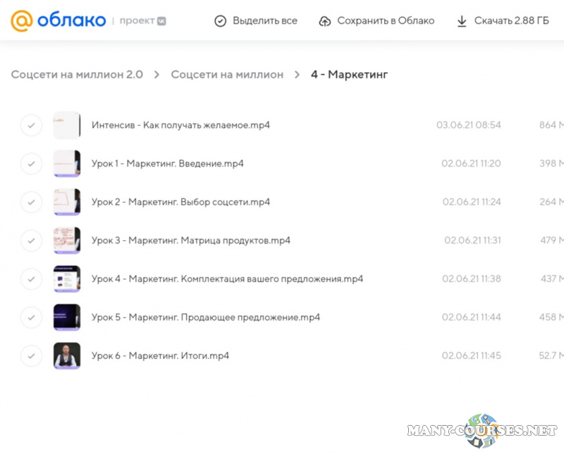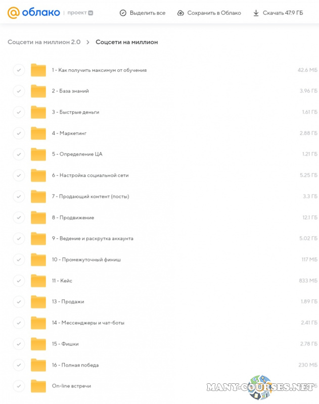 Вы находитесь на странице товара «Михаил Христосенко - Социальные сети на миллион 2.0», это материал 2021 года, который, мы надеемся, принесет вам пользу. Данный курс расположен на платформе «Облако Mail».Скриншоты с платформы на которой расположены материалы вы можете найти выше. В нашем магазине курсы доступны по самым выгодным ценам. Вы можете перейти на оригинальный продажник, после чего принять решение о покупке. Если бы вы покупали у самого автора, то данный курс вам обошелся 36000 рублей. Вы получаете этот курс, купив в нашем магазине MANY-COURSES.NET, с огромной скидкой, всего 290 рублей. Обучающий курс входит в рубрику «SEO и SMM / Вконтакте (VK) / Instagram / Facebook», вы можете поискать другие сливы курсов в этой рубрике. В нашем магазине Вы найдёте ещё много курсов от автора «Михаил Христосенко», достаточно ввести в поиск имя автора.