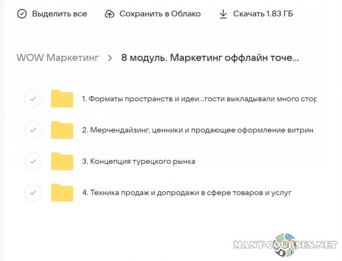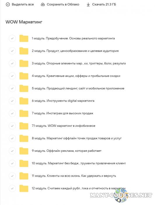 Вы находитесь на странице товара «Анастасия Полянская - WOW.Маркетинг. Тариф Pro», это материал который, мы надеемся, принесет вам пользу. Данный курс расположен на платформе «Облако Mail».Скриншоты с платформы на которой расположены материалы вы можете найти выше. В нашем магазине курсы доступны по самым выгодным ценам. Вы можете перейти на оригинальный продажник, после чего принять решение о покупке. Вы получаете этот курс, купив в нашем магазине MANY-COURSES.NET, с огромной скидкой, всего 1290 рублей. Обучающий курс входит в рубрику «SEO и SMM / Реклама и маркетинг», вы можете поискать другие сливы курсов в этой рубрике. В нашем магазине Вы найдёте ещё много курсов от автора «Анастасия Полянская», достаточно ввести в поиск имя автора.