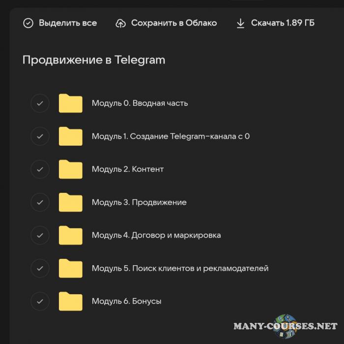 Вы находитесь на странице товара «Вероника Бондаренко - Продвижение в Telegram. Тариф Vip», это материал который, мы надеемся, принесет вам пользу. Данный курс расположен на платформе «Облако Mail».Скриншоты с платформы на которой расположены материалы вы можете найти выше. В нашем магазине курсы доступны по самым выгодным ценам. Вы получаете этот курс, купив в нашем магазине MANY-COURSES.NET, с огромной скидкой, всего 1100 рублей. Обучающий курс входит в рубрику «SEO и SMM / Telegram / Бизнес, менеджмент, продажи», вы можете поискать другие сливы курсов в этой рубрике. В нашем магазине Вы найдёте ещё много курсов от автора «Вероника Бондаренко», достаточно ввести в поиск имя автора.