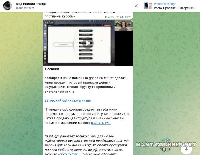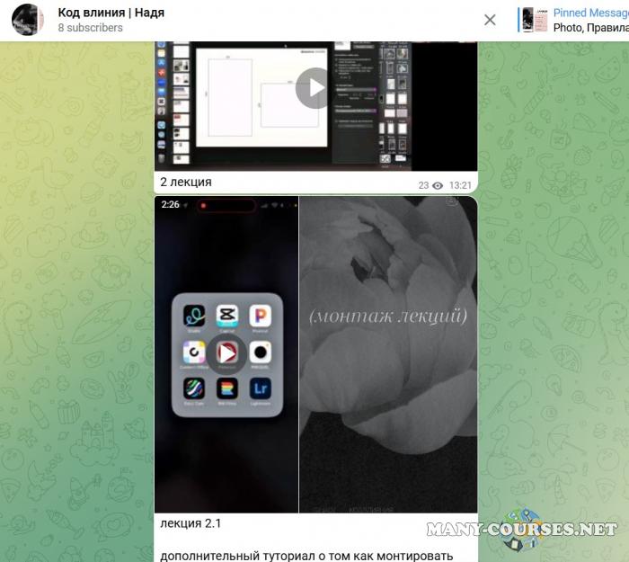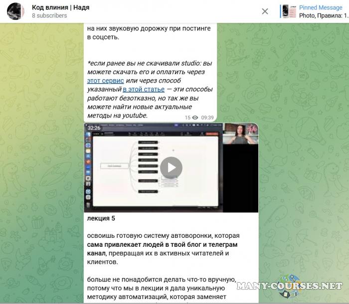 Вы находитесь на странице товара «Надежда Косенок - Код влияния. Тариф Премиальный», это материал 2025 года, который, мы надеемся, принесет вам пользу. Данный курс расположен на платформе «Канал Telegram».Скриншоты с платформы на которой расположены материалы вы можете найти выше. В нашем магазине курсы доступны по самым выгодным ценам. Вы можете перейти на оригинальный продажник, после чего принять решение о покупке. Если бы вы покупали у самого автора, то данный курс вам обошелся 9300 рублей. Вы получаете этот курс, купив в нашем магазине MANY-COURSES.NET, с огромной скидкой, всего 790 рублей. Обучающий курс входит в рубрику «SEO и SMM / Реклама и маркетинг», вы можете поискать другие сливы курсов в этой рубрике. В нашем магазине Вы найдёте ещё много курсов от автора «Надежда Косенок», достаточно ввести в поиск имя автора.